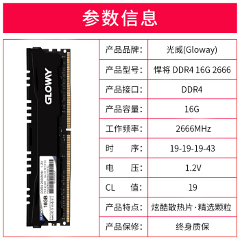 光威(Gloway)16GB DDR4 2666频率 台式机内存 悍将系列-精选颗粒/匠心打造 |