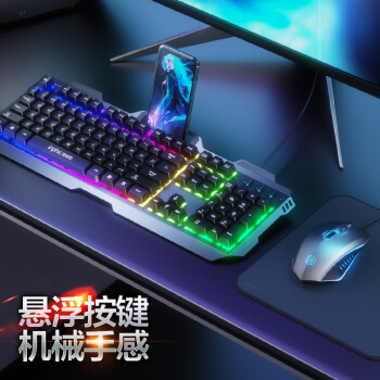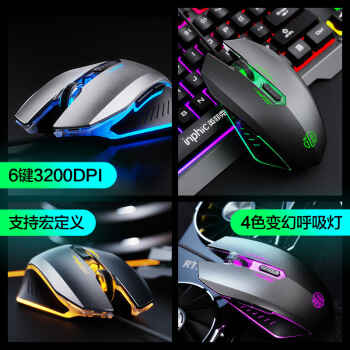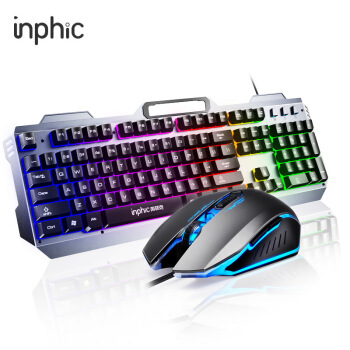 英菲克(INPHIC)V680h真机械手感键盘鼠标套装有线游戏办公电脑台式机USB外接吃鸡背光键鼠套装金属面板 灰 |