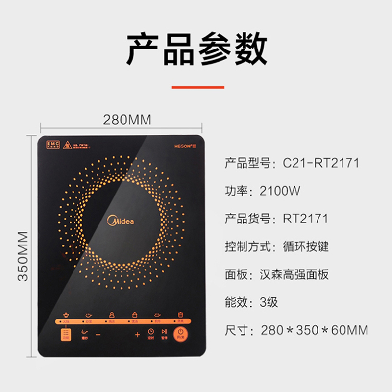 美的(Midea)电磁炉多功能大功率 触控黑晶面板【汉森高强面板/橙色】 |