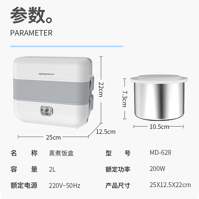 不锈钢内胆防干烧电热饭盒【食品级不锈钢/灰白】 |