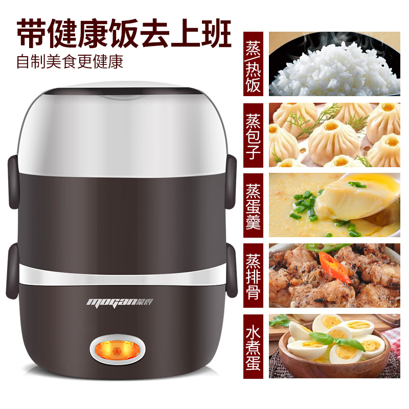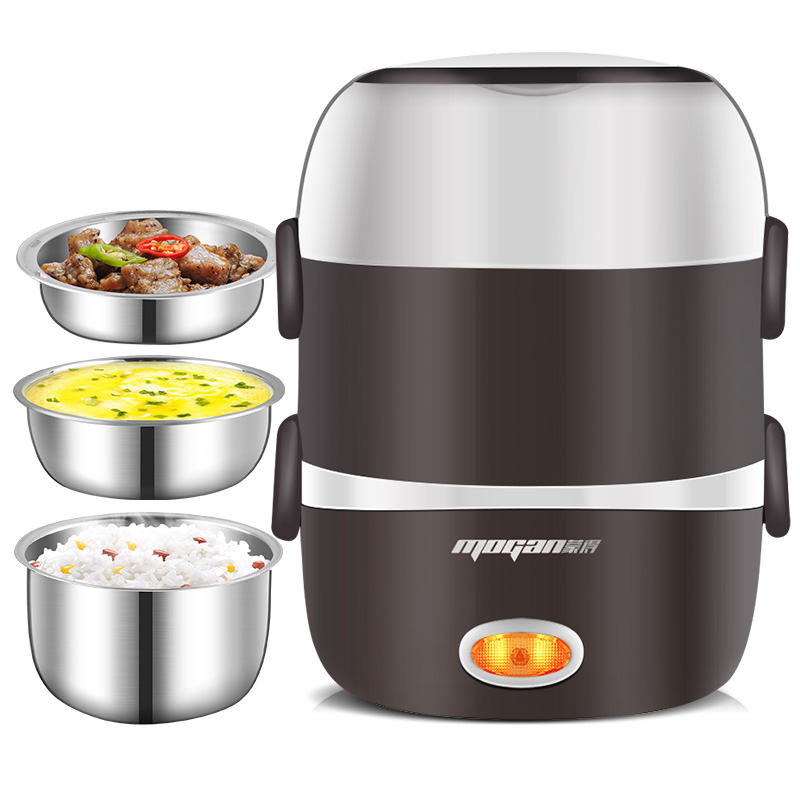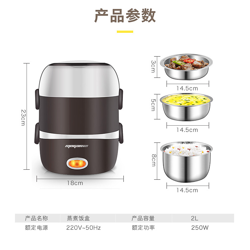 便捷式上蒸下煮电热饭盒【不锈钢/棕色】 |