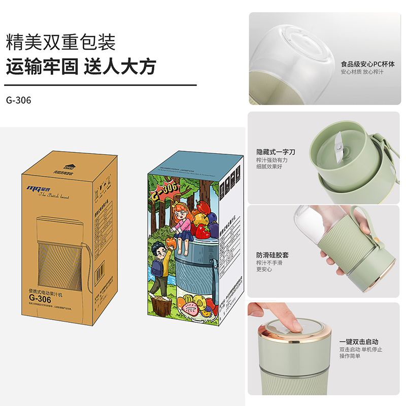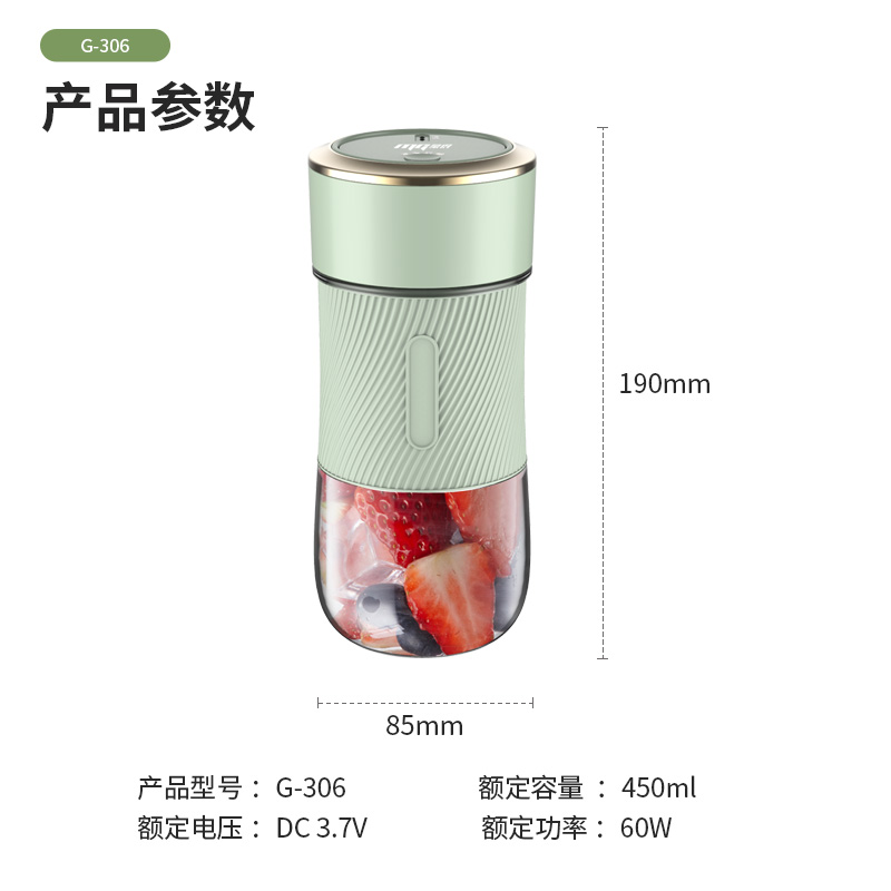 450ML网红款果汁机现榨鲜喝小巧便捷40秒快速榨汁【PC杯体/淡绿色】 |