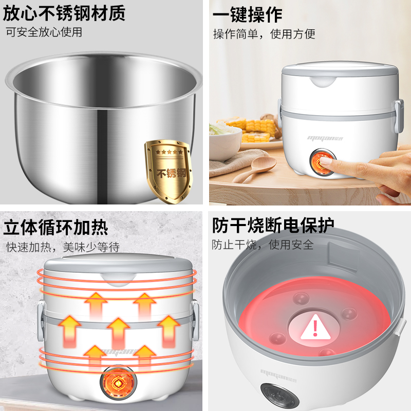防干烧自动断电双层饭盒【食品级不锈钢/白色】 |