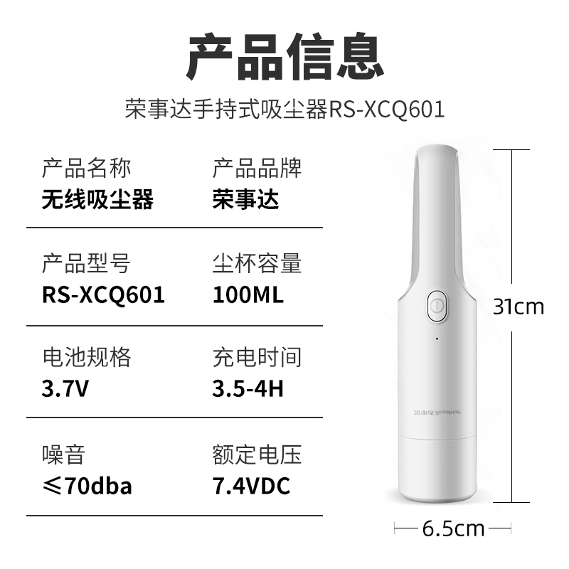 荣事达车家两用无线小型吸尘器【100%塑料/白色】 |