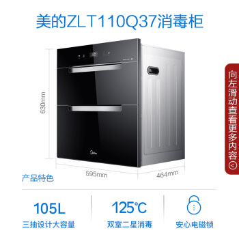 美的(Midea)消毒柜家用 碗柜 碗筷 紫外线 二星级105L 嵌入式 110Q37 |
