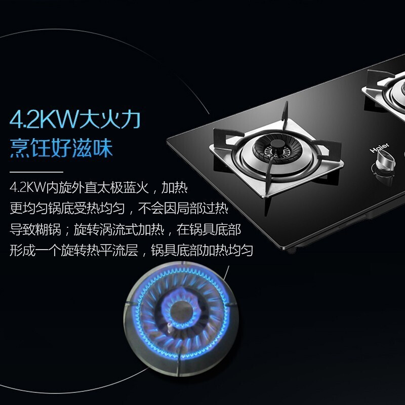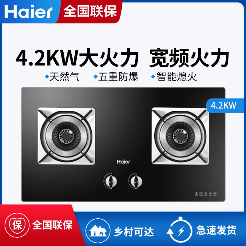 Haier/海尔 JZT-QE5B2(12T) 燃气双灶 天然气灶具台嵌两用熄火保护钢化玻璃灶面板【防爆玻璃/黑色】 |