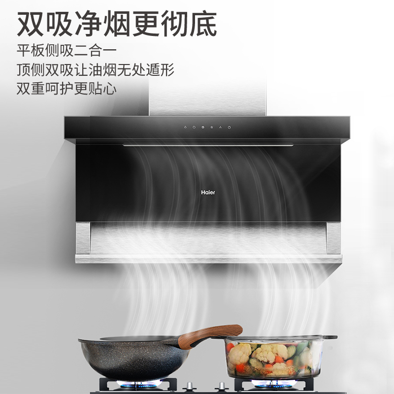 海尔油烟机CXW-219-C1701顶吸侧吸7字形触摸高层专用大吸力大风压【钢化玻璃/冷灰】 |