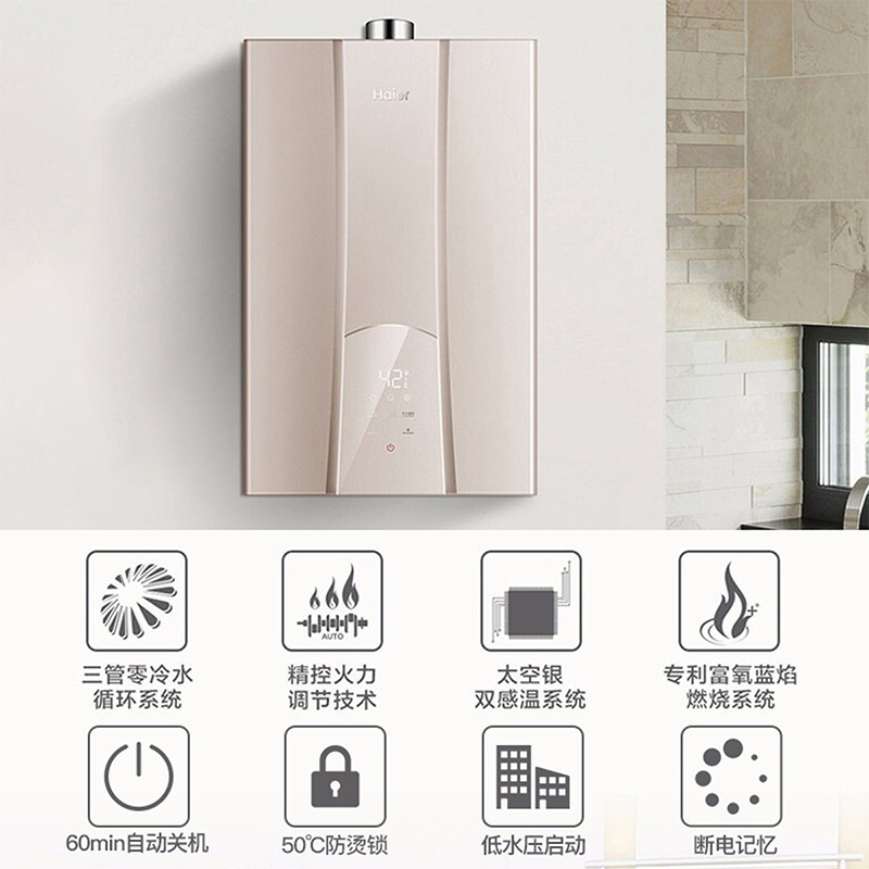 Haier/海尔 JSQ25-13R5BW 零冷水 三管大水量 双感恒温 低压启动 天然气【不锈钢/金色】 |