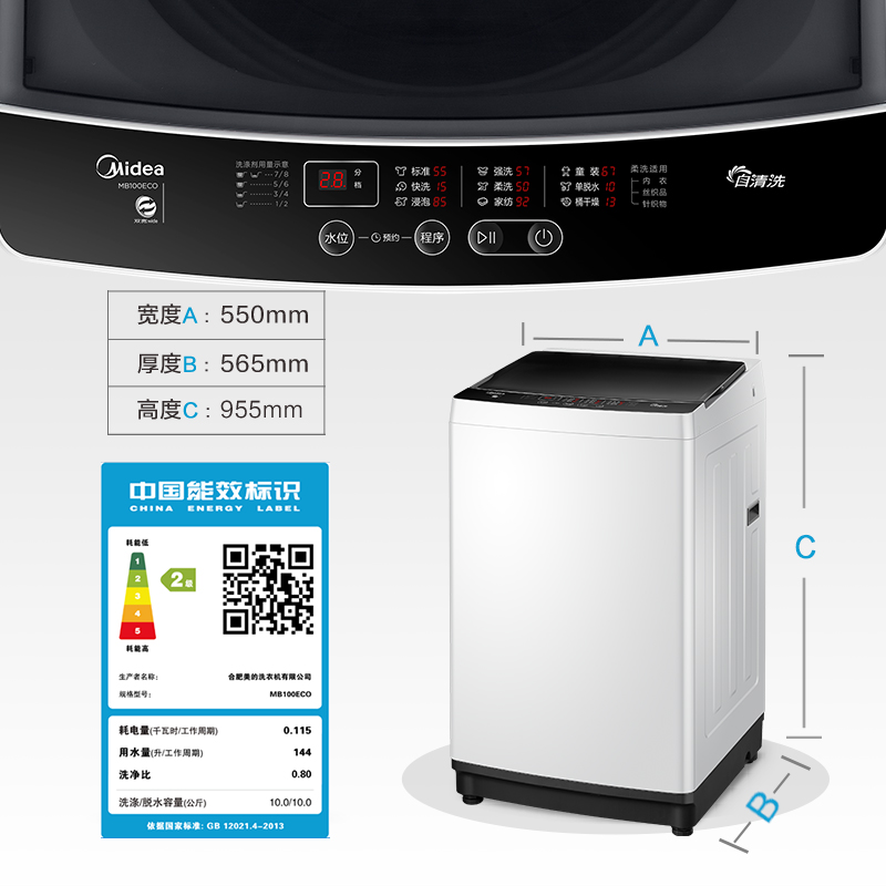 美的(Midea)MB100ECO 10公斤大容量全自动波轮洗衣机 洗脱一体洗衣机 十年免清洗 水电双宽【洗衣机/白色】 |