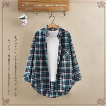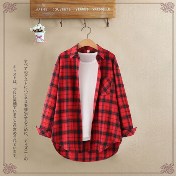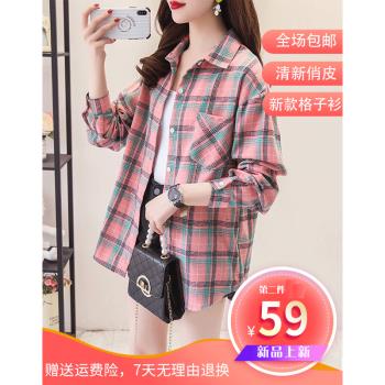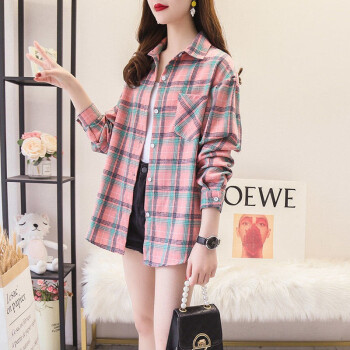 得听衬衫女秋装新款磨毛棉格子衬衫女秋夏季复古港味学生宽松休闲通勤百搭大码纯棉上衣女长袖外套 粉色格子(9号) M(100-115斤) |