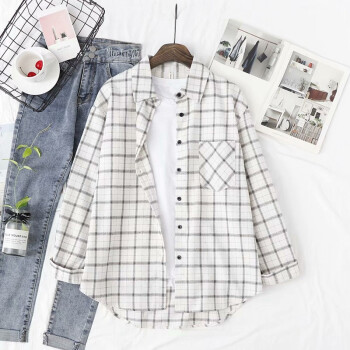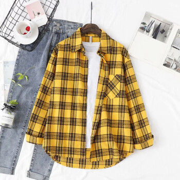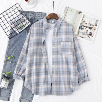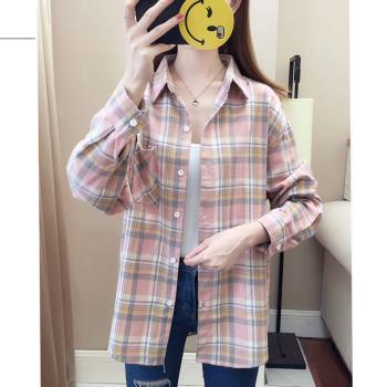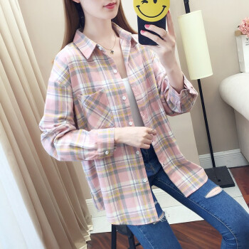 得听格子衬衫女长袖秋季新款小清新韩版宽松百搭学生春秋装纯棉衬衫大码外套上衣女 粉红色 M(105-120斤) |