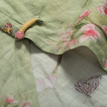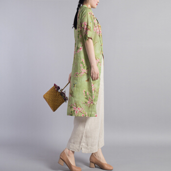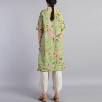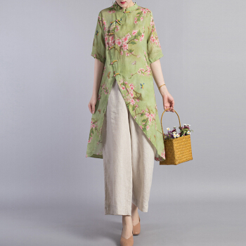 龙芝美 衬衫女夏季新款中国风改良汉服不规则复古珠扣苎麻印花立领宽松棉麻衬衣上衣 L1-BH452-8995-上衣图片色 XL |