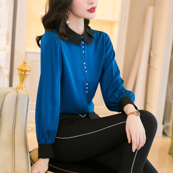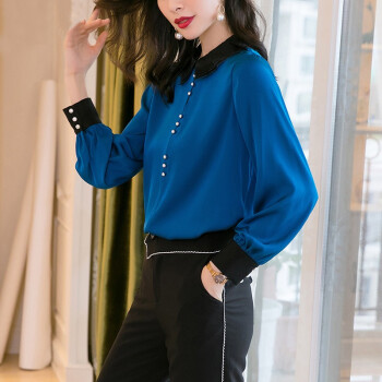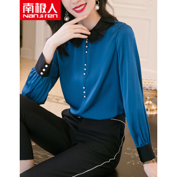 南极人 长袖衬衫女夏季新款女装时尚撞色绣花娃娃领衬衣原创设计纯色打底小衫上衣潮 N4-NRB42-5269-蓝色 M |
