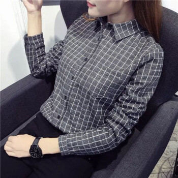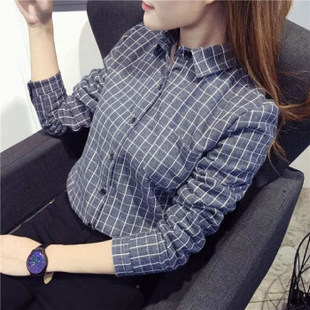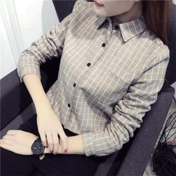 得听衬衫女新款纯棉格子衬衫女长袖宽松秋季韩版百搭学生休闲磨毛打底衬衣 杏色 M(100-110斤) |