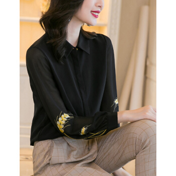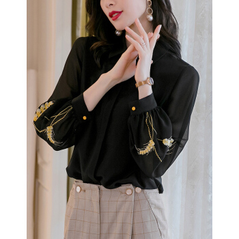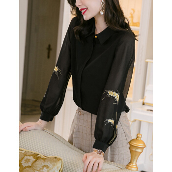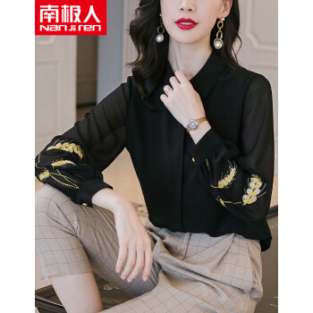 南极人 长袖衬衫女夏季新款时尚绣花衬衣休闲宽松女装雪纺小衫气质优雅潮流上衣潮 N4-NRA67-8608-黑色 M |
