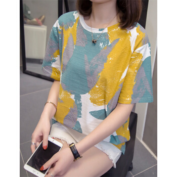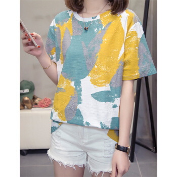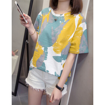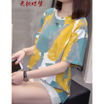 云妆蝶梦短袖t恤女大码女装棉麻新款夏季学生t恤卫衣显瘦减龄宽松半袖上衣女 黄色 L(建议90-120斤) |