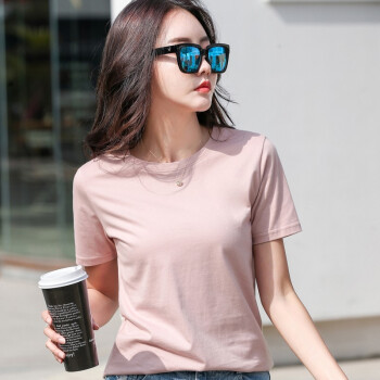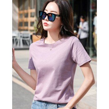 红粉宣言夏季新款百搭宽松纯棉短袖T恤女显瘦 香芋紫 L |