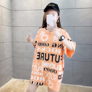凝拉t恤女短袖纯棉新款夏装中长款韩版宽松大码欧货潮上衣服半袖体恤 桔色 2XL(建议150-170斤) |