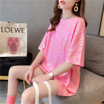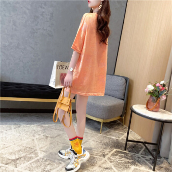 苹纳莎 短袖T恤女韩版宽松夏季新款时尚个性中长款亮闪闪上衣大码女装打底衣服潮 桔色 L |