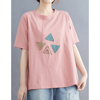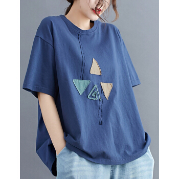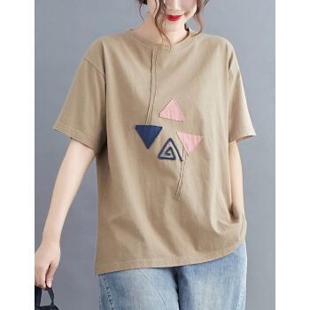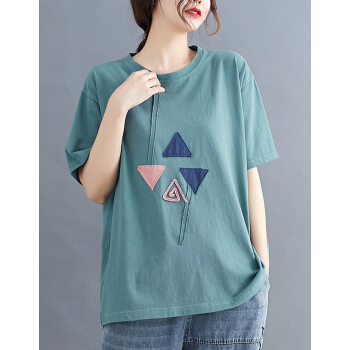 婪澈T恤女女装夏季新款宽松短袖女上衣休闲百搭撞色贴布文艺女t恤衣服女 绿色 请拍正确尺码 |