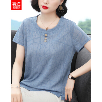 赛迩短袖t恤女夏装新款宽松体恤半袖夏季衣服女士小衫中年大码女装打底衫夏天外穿上衣 图片色 L |