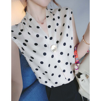 南极人 雪纺短袖t恤女士夏装新品法式波点v领小心机简约遮肚减龄休闲ins百搭上衣体恤 N2-NRB41-7871-波点上衣 M |
