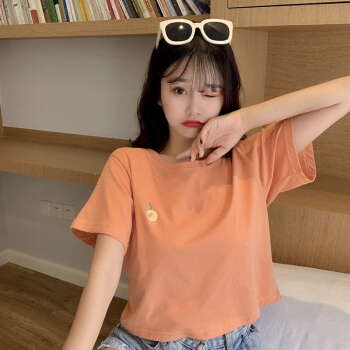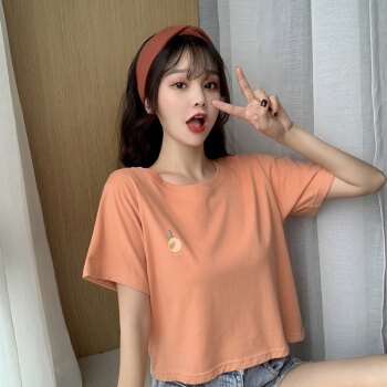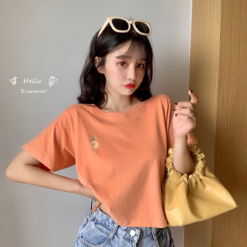 短袖t恤女ins潮网红夏季新款韩版修身显瘦体恤纯色纯棉短款上衣秋款 橘色 S |