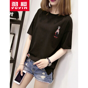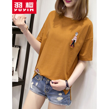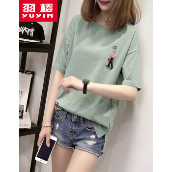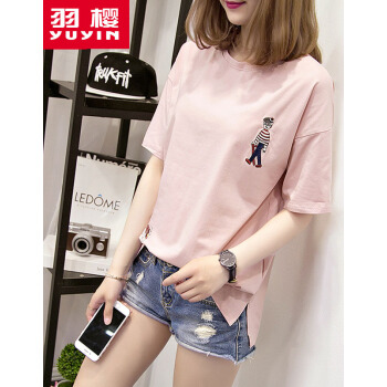 羽樱 短袖t恤女夏装新款大码女装宽松韩版学生棉T恤半袖上衣服女 7338 白色 L |