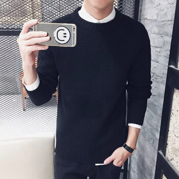 琛倪秋冬季新款套头纯色低领半高领毛衣男韩版潮流青少年学生时尚百搭针织衫打底衫 深蓝色 M |
