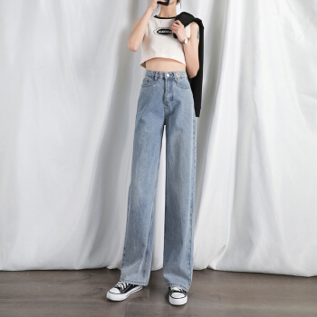高腰阔腿裤泫雅牛仔裤女新款夏季薄款直筒宽松垂感拖地裤子 复古蓝 XXS 75-85斤 |