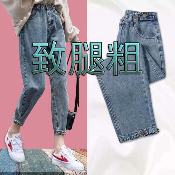 洋梦星童牛仔裤女小脚九分裤夏季新款韩版高腰显瘦女裤哈伦裤潮 5995浅蓝色【束脚】 M100斤左右 |