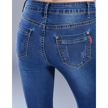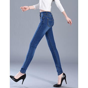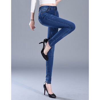 【精选女裤】Hizze牛仔裤女春夏季新款修身弹力显瘦韩版时尚小脚紧身高腰百搭铅笔裤休闲长裤 深蓝 请拍正确尺码 |