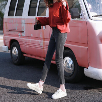 灰色牛仔裤女夏季新款高腰弹力修身显瘦学生紧身百搭休闲秋装女士九分小脚铅笔裤子 灰色九分 27码 |