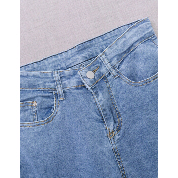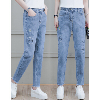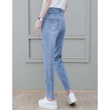 芳帛休闲牛仔裤女高腰宽松显瘦夏季新款韩版女裤九分直筒小脚裤潮 蓝色 L |