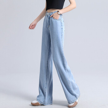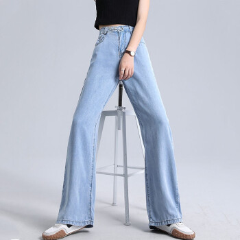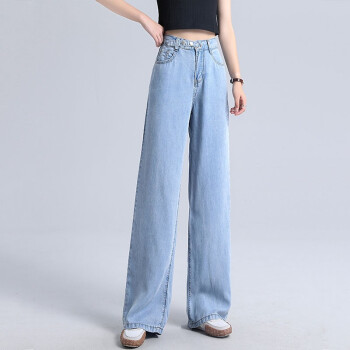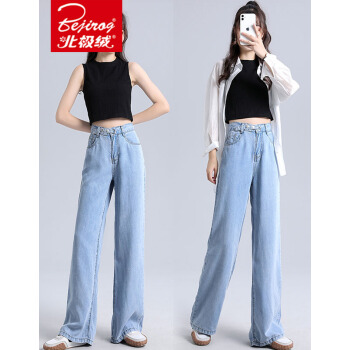 北极绒牛仔裤女春秋季新品韩版潮流阔腿裤女高腰垂感牛仔裤女休闲直筒宽松拖地裤女6763 蓝色 请拍正确尺码 |