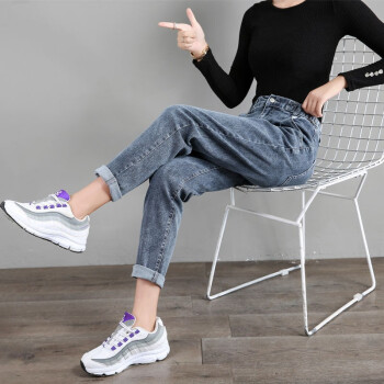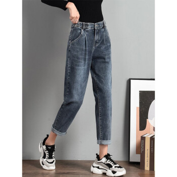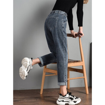 【2件特价】好梦雅 烟灰色老爹牛仔裤女宽松春秋新款韩版显瘦松紧高腰哈伦萝卜裤子 228款【蓝灰色】 28 【建议105斤-115斤】 |