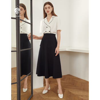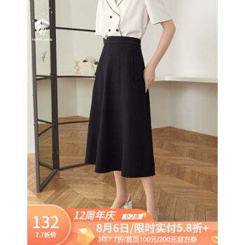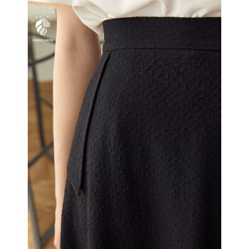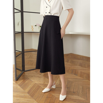 范思蓝恩 夏季新款肌理感高腰半身裙女百搭短裙雪纺a字裙子女 黑色 L |