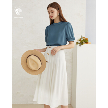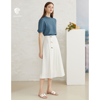 范思蓝恩 夏季新款中长款高腰半身裙设计感小众气质压褶裙子女 白色 S |