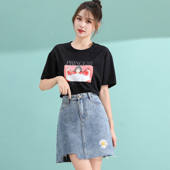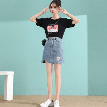 阅樱牛仔半身裙女短裙 新款小雏菊刺绣裙不规则显瘦高腰a字短裙包臀裙一步裙夏学生裙子 蓝色(单裙款) L |