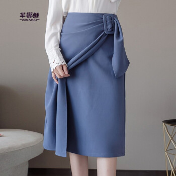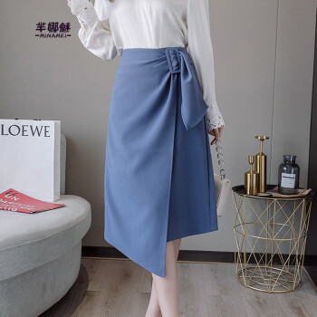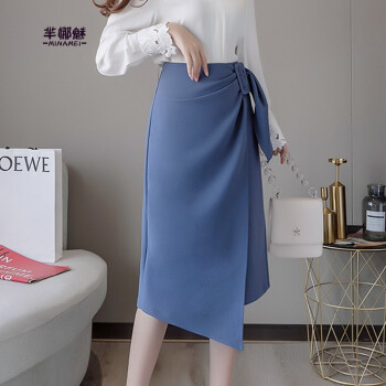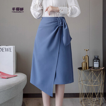 芈娜魅不规则半身裙女中长款夏新款学生高腰显瘦包臀裙时尚百搭开叉一步裙子 图片色 XL |