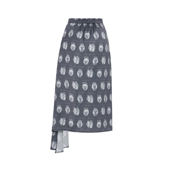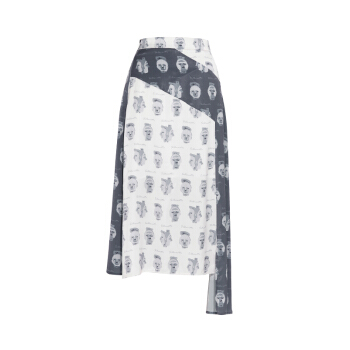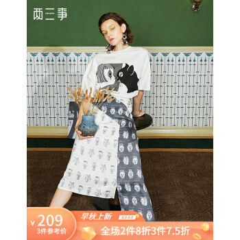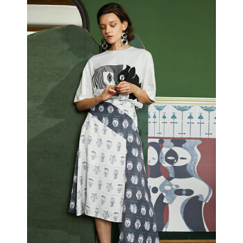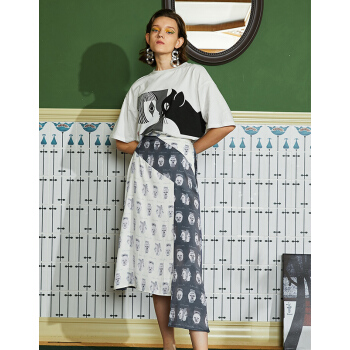 【商场同款】两三事 白日叠影 夏季新款复古撞色头像印花不规则高腰半身裙 拼色 M |