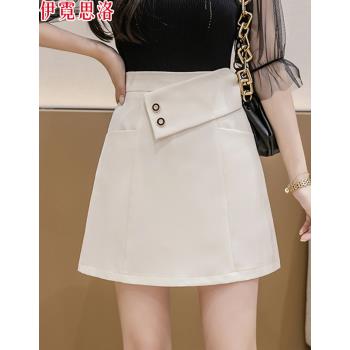 伊霓思洛半身裙女夏季高腰新款短裙子韩版A字裙时尚女装显瘦职业裤裙 黑色 M |