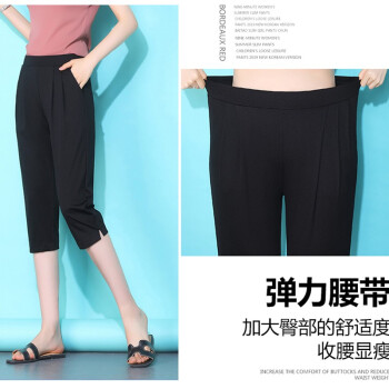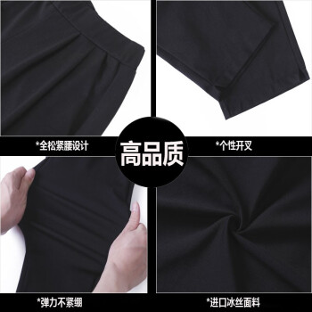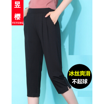 昱樱冰丝休闲裤女夏季新款学生哈伦裤宽松薄款显瘦直筒中裤胖MM裤子黑色大码女装七分萝卜裤女潮 黑色(9966开叉) 此码勿拍.请拍自身对应码数 |