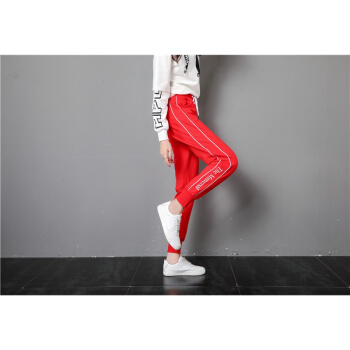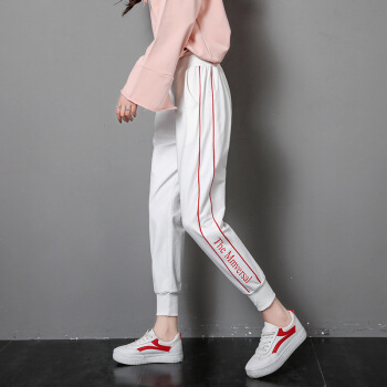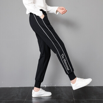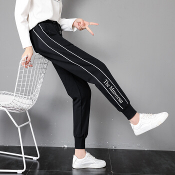 莉社运动裤女新款学生韩版宽松显瘦休闲裤 黑色长裤 L |