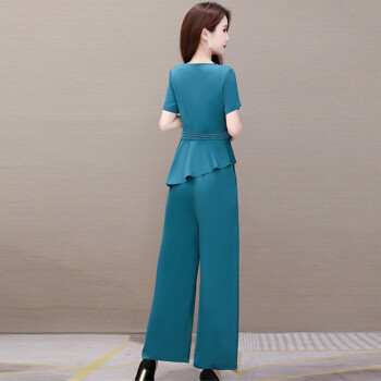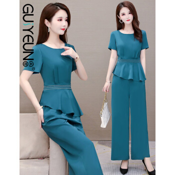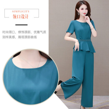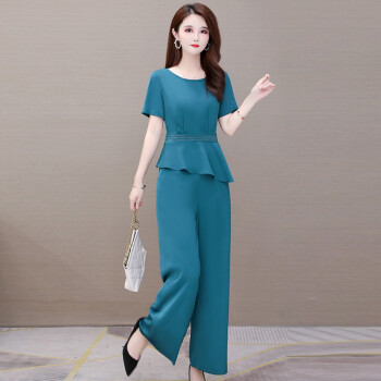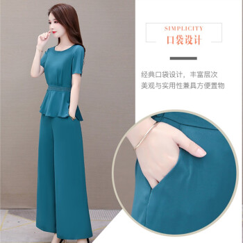 闺园休闲裤女套装秋冬季新款小香风洋气休闲时尚套装女妈妈装阔腿裤女两件套 虾青色 请拍正确尺码 |