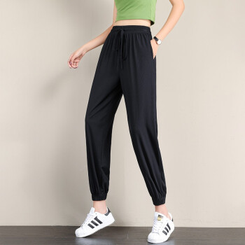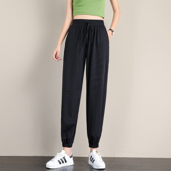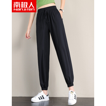 南极人 冰丝运动裤女夏季新款宽松束脚薄款卫裤垂感显瘦百搭休闲裤女学生阔腿灯笼裤 黑色 请拍正确尺码 |