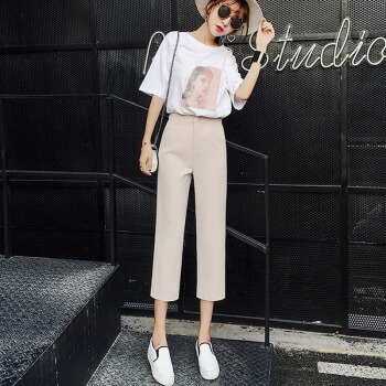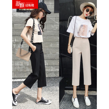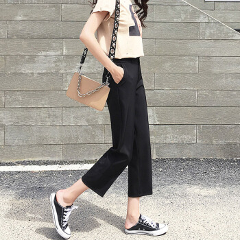 阔腿裤女九分裤夏新款休闲高腰垂感西装裤薄款宽松七分直筒裤秋天 黑色9分 M |