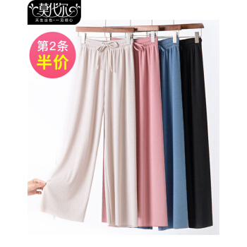 莫代尔冰丝阔腿裤女春秋九分休闲裤夏高腰垂感小个子显瘦宽松百搭直筒西装运动哈伦 黑色九分(建议85-135斤) |