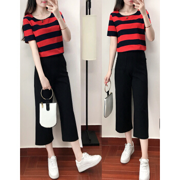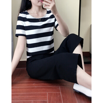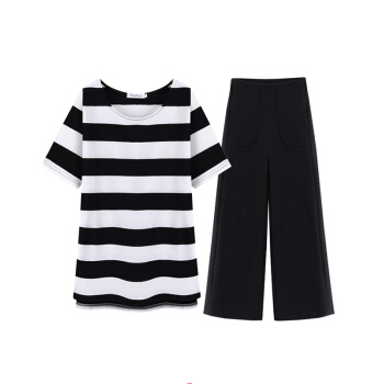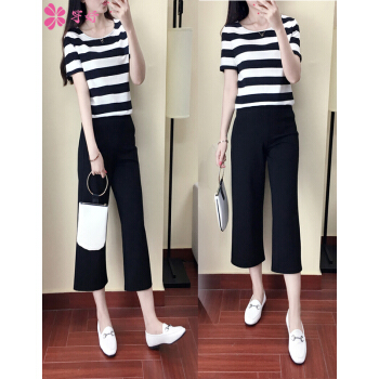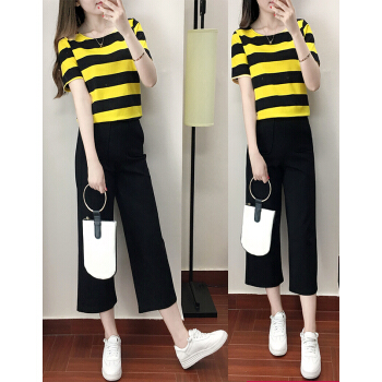 竽妤休闲裤女休闲套装女夏季阔腿裤套装女夏装时尚套装新款韩版休闲女夏装两件套洋气套装 黑色条纹 请拍对应尺码 |