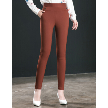 【精选女裤】晞薇休闲裤女裤秋季新款韩版大码打底裤外穿高腰显瘦中年妈妈裤焦糖色弹力小脚长裤 焦糖色 M |